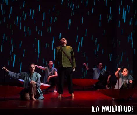 Nuestro aporta consistirá en describir algunas características de esta obra, las cuales son radicalmente diferentes a las del teatro occidental. La multitud nos narra la historia de la venganza de Wang Guoqing («Yo soy como el polvo que revolotea en la luz y que nunca se asienta»). Los sucesos se inician durante la Revolución cultural china, donde su madre es asesinada por Ding Jianguo y continúan hasta la actualidad, en la llamada apertura de China al mundo. El elenco estuvo conformado por Victor Prada, María Angélica Vega, Maríajose Vega, Oscar Carillo, Anneliese Fiedler y Claret Quea. Estamos ante actores de primerísimo nivel, a pesar de esto nunca notamos que alguno se destaque; si Wang Guoqing es el protagonista, pareciera que esto solo se refleja a nivel de la historia. La profundidad de la obra no radica en la construcción de los personajes, sino en el multi-perspectivismo con el que se construyen las escenas y todo el montaje en general.